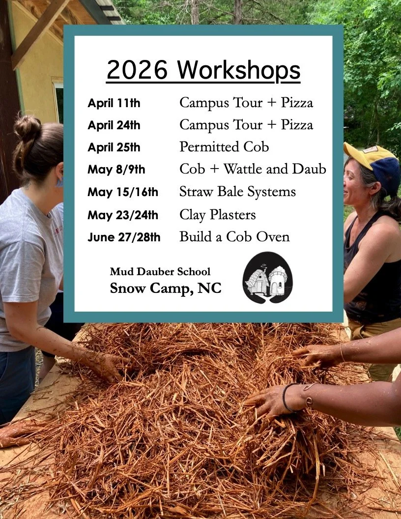 We are located in Snow Camp, NC, where we have been involved in natural building projects for more than 15 years.